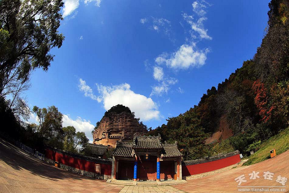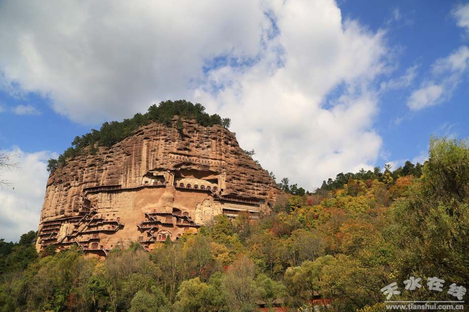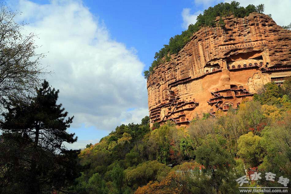 (深秋的麥積山多姿多彩 天水在線攝于2014年11月1日) |