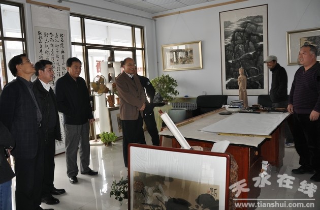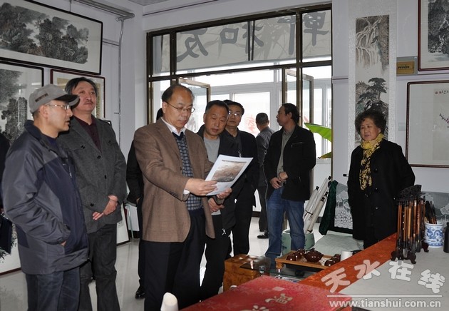 11月12日,天水市委常委、宣傳部長(zhǎng)彭鴻嘉帶領(lǐng)相關(guān)部門負(fù)責(zé)人赴秦州區(qū)堅(jiān)家河花鳥魚蟲古玩市場(chǎng),對(duì)初具規(guī)模的書畫市場(chǎng)進(jìn)行了調(diào)研。