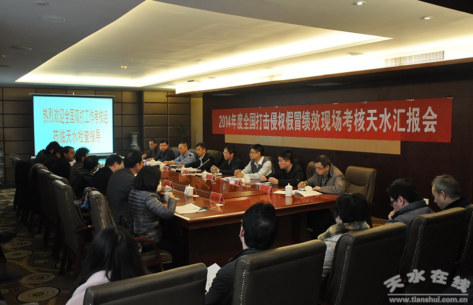 。苍拢慈,由全國打擊侵權(quán)假冒工作考核組組長、工業(yè)和信息化部原材料工業(yè)司副巡視員呂桂新帶領(lǐng)的考核組一行來我市,就天水市2014年打擊侵權(quán)假冒工作目標(biāo)責(zé)任完成情況進行考核。甘肅省打擊侵權(quán)假冒辦公室主任、省商務(wù)廳副廳長肖立群,天水市副市長、市打擊侵權(quán)假冒領(lǐng)導(dǎo)小組組長溫利平陪同考核。
