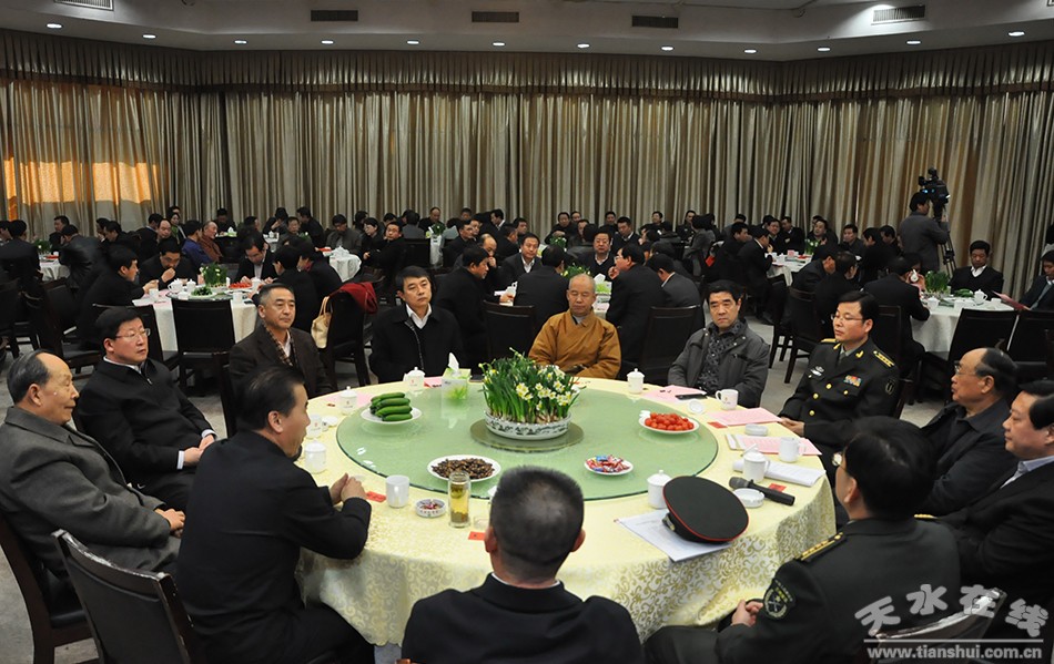 一杯清茶迎新春,滿腔熱情話發(fā)展。2月13日下午,天水市舉行迎春茶話會,全市黨政軍及各族各界人士代表歡聚一堂,共敘情誼,暢談發(fā)展,喜迎新春。
