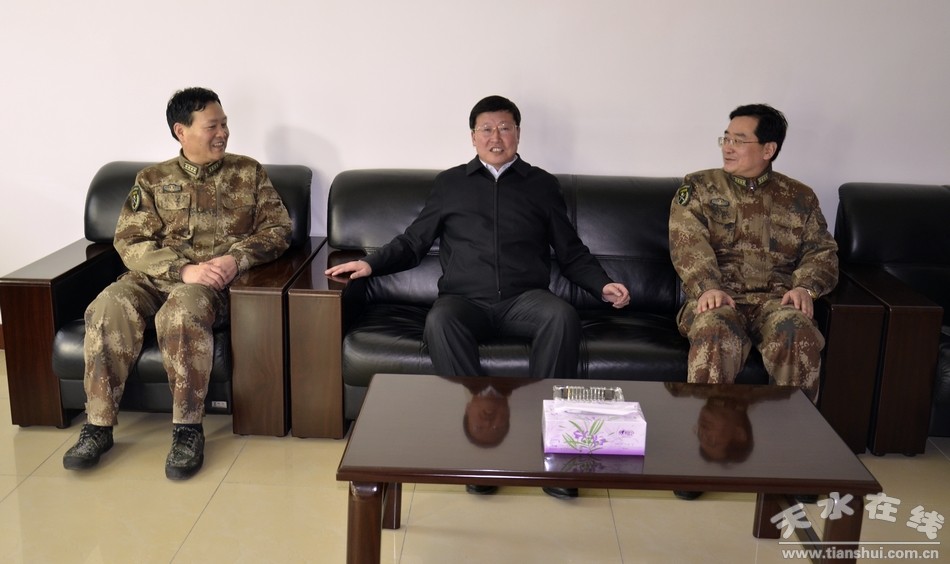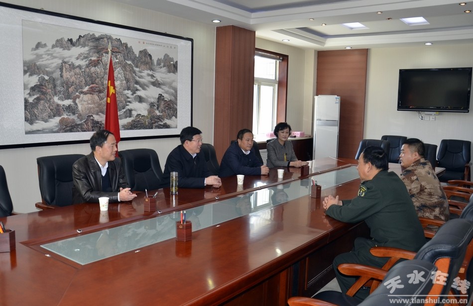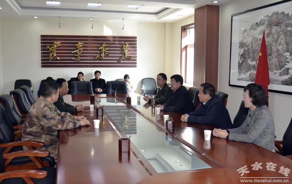 2月12日下午,天水市委副書記、市政協(xié)主席、市雙擁工作領(lǐng)導(dǎo)小組常務(wù)副組長(zhǎng)宋尚有走訪慰問(wèn)了天水軍分區(qū)、68202部隊(duì)、天水預(yù)備役旅、96363部隊(duì)等駐市部隊(duì),并代表市四大組織向部隊(duì)官兵表示新春的祝福和親切的慰問(wèn),市民政局、市雙擁辦負(fù)責(zé)人陪同走訪慰問(wèn)。