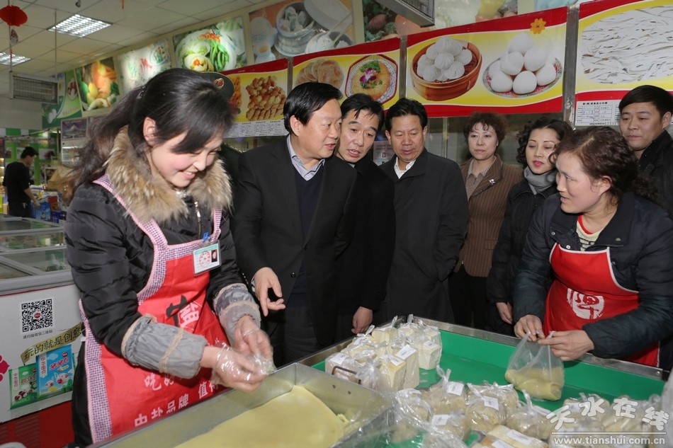 在新春佳節(jié)即將到來之際,2月13日,天水市委副書記、市長楊維俊,市委常委、副市長張明泰,副市長溫利平,市政府秘書長逯克宗帶領有關部門負責人,對我市節(jié)前市場商品供應和安全生產(chǎn)工作進行了檢查。楊維俊強調(diào),要加大市場監(jiān)管力度,加強安全防范工作,確保節(jié)日市場供應和安全生產(chǎn),確保全市人民度過一個平安、祥和的春節(jié)。