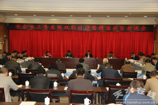 為進(jìn)一步貫徹落實(shí)省、市委關(guān)于聯(lián)村聯(lián)戶行動(dòng)和精準(zhǔn)扶貧大會(huì)精神,安排部署企業(yè)雙聯(lián)行動(dòng)和精準(zhǔn)扶貧任務(wù),進(jìn)一步動(dòng)員各企業(yè)黨組織、廣大干部群眾以更加飽滿的熱情、更加堅(jiān)定的信心、更加有效的舉措推進(jìn)雙聯(lián)行動(dòng)和精準(zhǔn)扶貧工作深入開展。5月6日,天水市企業(yè)工委在天水迎賓館召開了全系統(tǒng)雙聯(lián)行動(dòng)暨精準(zhǔn)扶貧推進(jìn)會(huì),有參聯(lián)任務(wù)的36戶企業(yè)黨委書記和雙聯(lián)辦負(fù)責(zé)人70多人參加了會(huì)議。會(huì)議傳達(dá)了省、市委雙聯(lián)行動(dòng)和精準(zhǔn)扶貧會(huì)議精神,會(huì)上,受到省、市委表彰的天水卷煙廠、天水煙草公司、華天電子集團(tuán)、天水長(zhǎng)開廠公司、天水二一三電器公司、天水星火機(jī)床公司等6戶企業(yè)做了交流發(fā)言,為各企業(yè)下一步開展雙聯(lián)行動(dòng)和精準(zhǔn)扶貧提供借鑒。