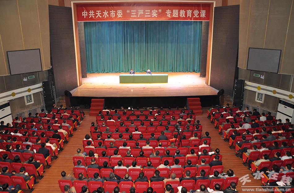 5月12日上午,天水市舉辦“三嚴三實”專題教育黨課,市委書記王銳以講黨課的形式為有關領導干部貫徹落實“三嚴三實”要求作輔導報告,正式啟動全市縣處級以上領導干部“三嚴三實”專題教育。