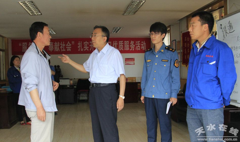 (圖為天水市運(yùn)管局張憲泉局長(zhǎng)深入出租車公司檢查高考免費(fèi)車輛的落實(shí)情況)