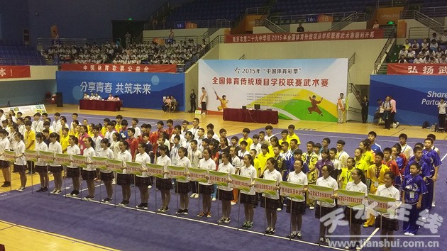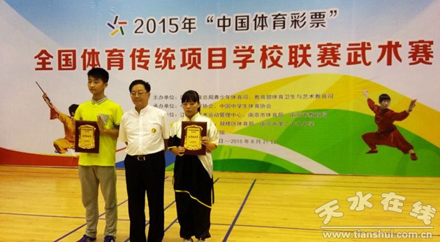 8月17日至21日,2015年全國體育傳統(tǒng)項(xiàng)目學(xué)校武術(shù)比賽在江蘇省南京市順利舉行,天水市10名運(yùn)動(dòng)員組成的甘肅省代表隊(duì)獲得了優(yōu)異成績,為我省贏得了榮譽(yù)。
