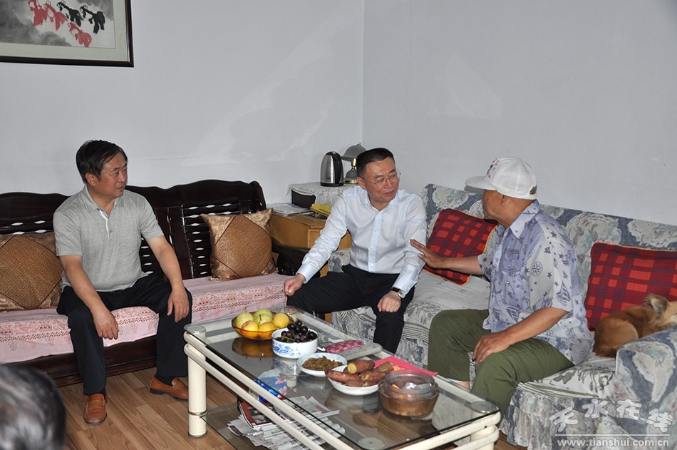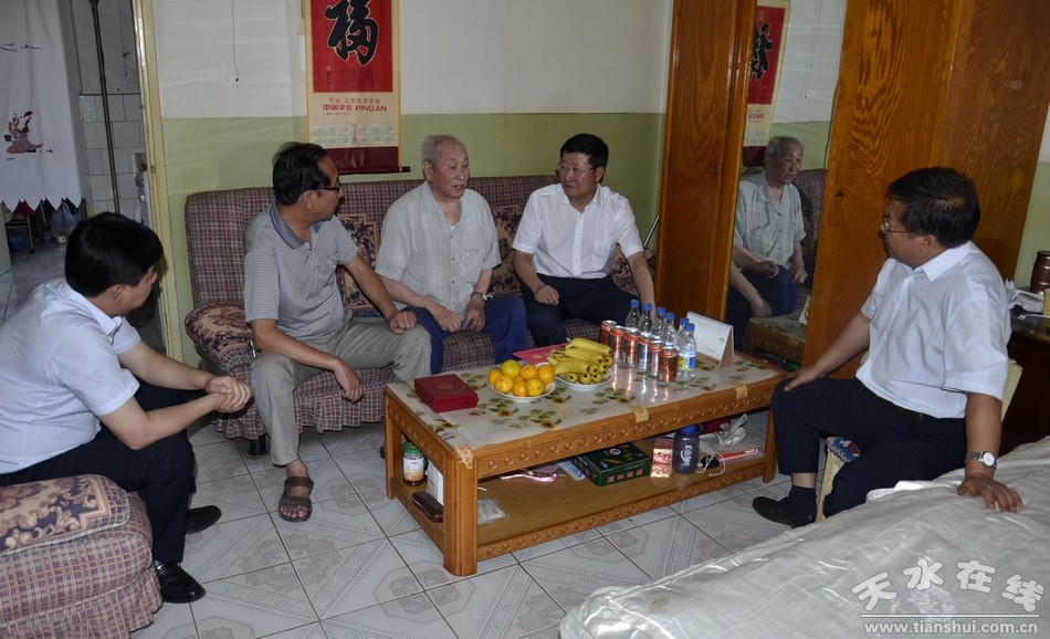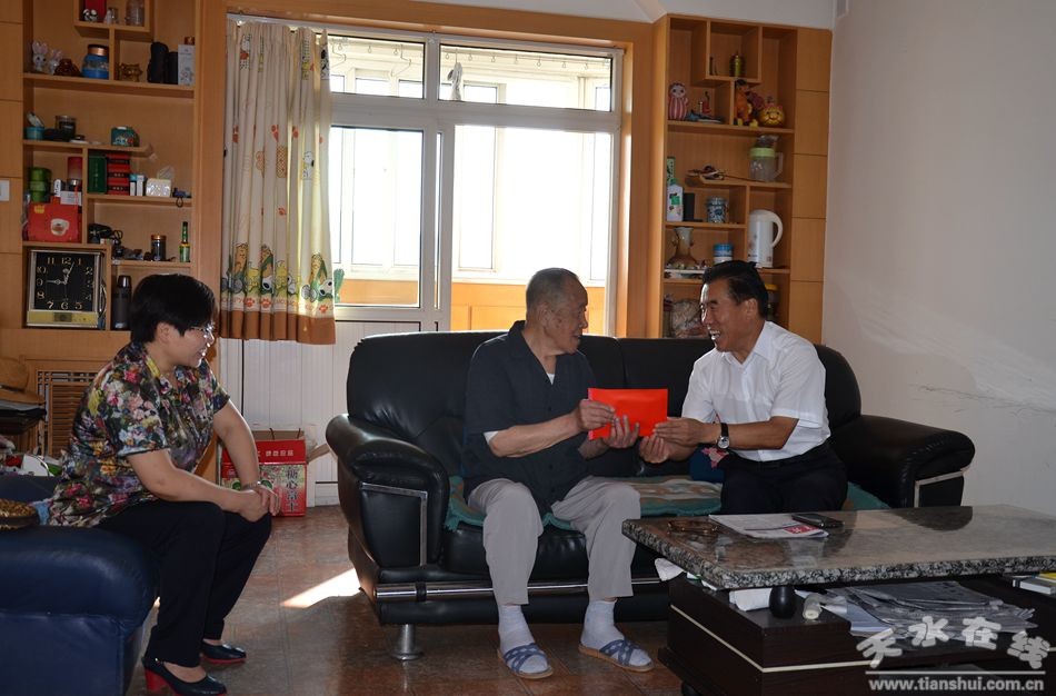 在中國人民抗日戰(zhàn)爭暨世界反法西期戰(zhàn)爭勝利70周年紀(jì)念日到來之際,8月27日至28日,天水市委書記王銳,市人大常委會(huì)主任柴金祥,市委副書記、市長楊維俊,市委副書記、市政協(xié)主席宋尚有分別帶隊(duì),專程看望慰問了我市離休抗戰(zhàn)老兵檀東元、李曉明、賈維三、張亮、張?zhí)炫、王占洲、李貴魚、閆貫堂,并通過他們,向全市抗戰(zhàn)老兵表達(dá)崇高的敬意和良好的祝愿。