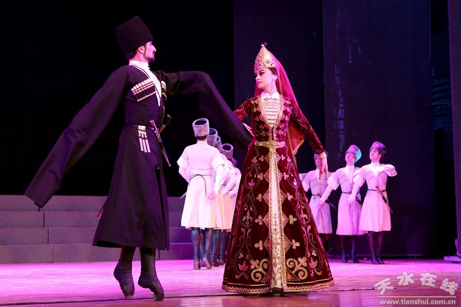 激昂的音樂拉開了整場演出的序幕,古老的阿迪格民間舞蹈《Zafak》、阿迪格民間舞蹈《Islamiy》、舞蹈組合《Nart的故事》、民間舞蹈《阿迪格相戀》、《高加索旋律》、《節(jié)慶舞蹈》等精彩的節(jié)目相繼上演。舞臺上被譽為“舞蹈運動員”的男演員,是當今世界唯一能用足尖跳舞卻不穿芭蕾舞鞋的舞蹈演員,行走、跳躍、旋轉(zhuǎn),這種特別的足尖旋轉(zhuǎn),堪稱世界之最。女演員的舞蹈則展示了優(yōu)雅、飄逸和流暢,舞臺上的精彩表演,讓臺下的觀眾掌聲不斷。