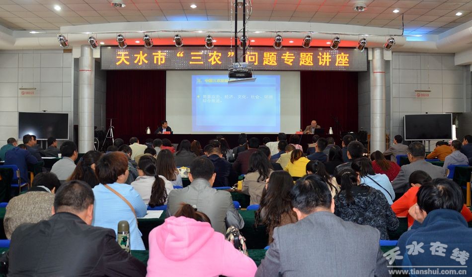 10月16日,天水市“三農(nóng)”問(wèn)題專題講座在市委黨校大禮堂舉行!叭r(nóng)”問(wèn)題專家、省委黨校經(jīng)濟(jì)教研部教授宋圭武圍繞“三農(nóng)”問(wèn)題、現(xiàn)代農(nóng)業(yè)建設(shè)、“三農(nóng)”發(fā)展對(duì)策等方面作了精彩闡述。