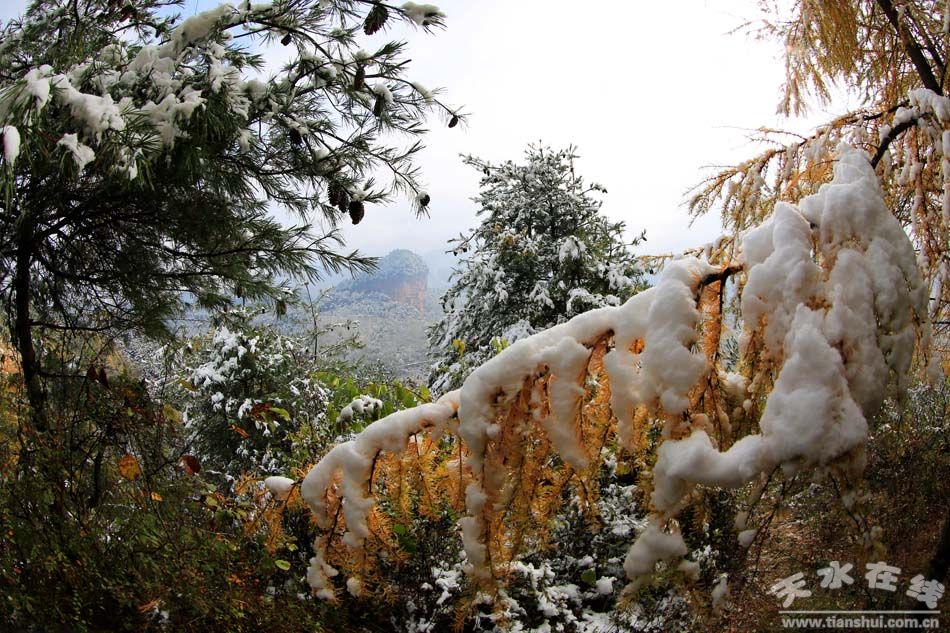 著名畫家梁雄德在麥積山寫生雪景(組圖)