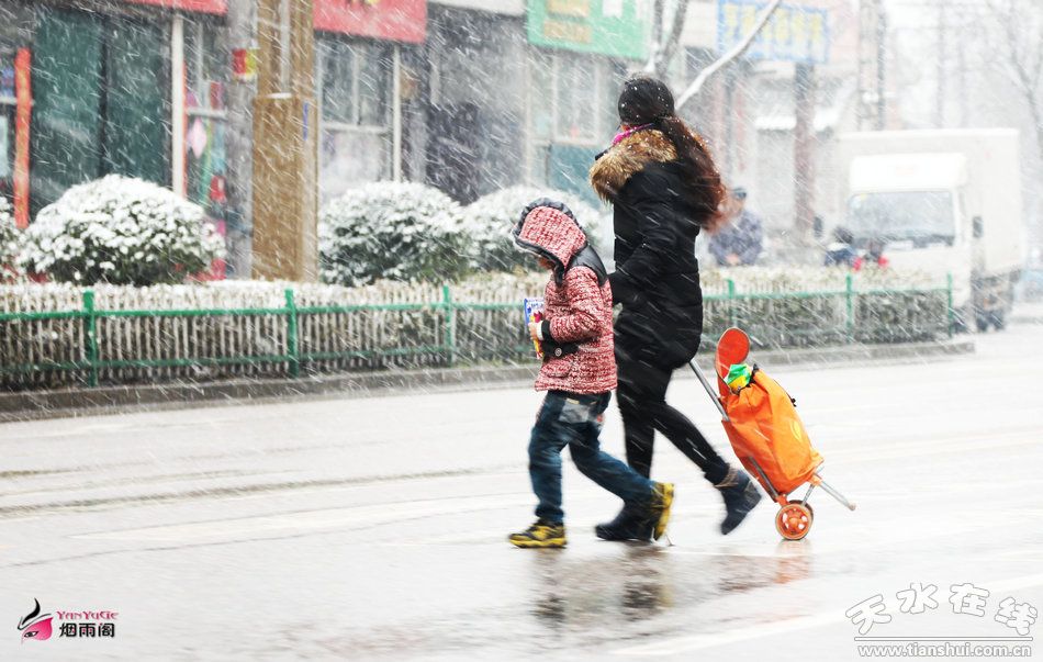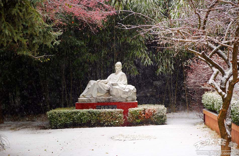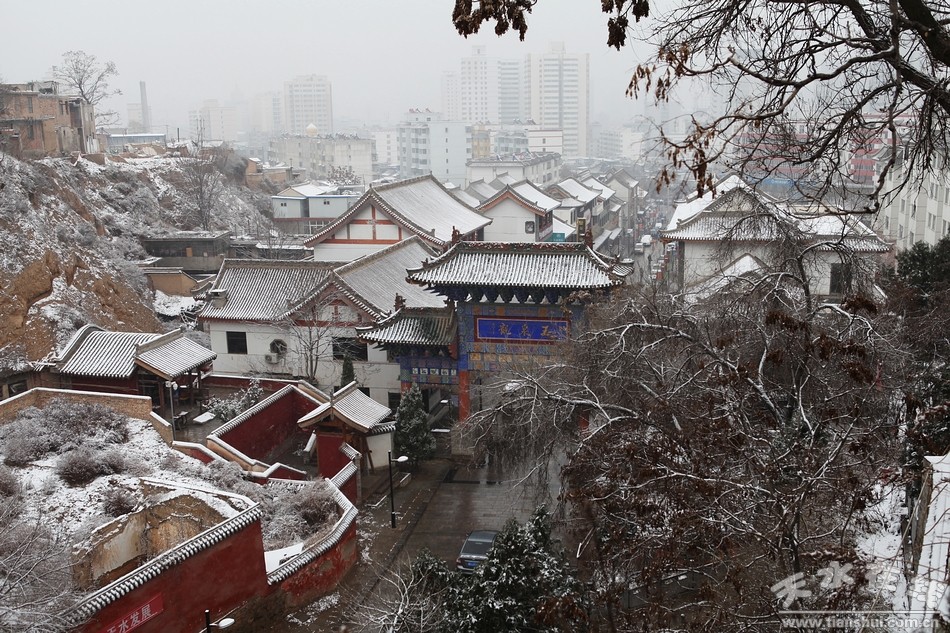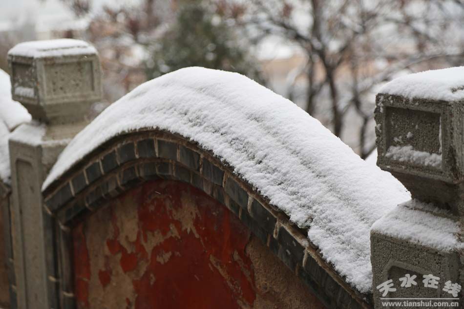 天水在線報道 12月12日,當全國的網(wǎng)民再次陷入購物的狂歡中時,古城天水,因為一場雪的到來,讓人們紛紛奔出家門,在雪中體驗大自然賜予我們別樣的狂歡。這場大范圍的降雪,比往年來的要晚一些。伏羲廟、玉泉觀、南郭寺、麥積山、天水的大街小巷到處一片銀妝素裹,漫步雪中,如行在畫里一般。雪給古老的天水城增添了無限魅力與浪漫。