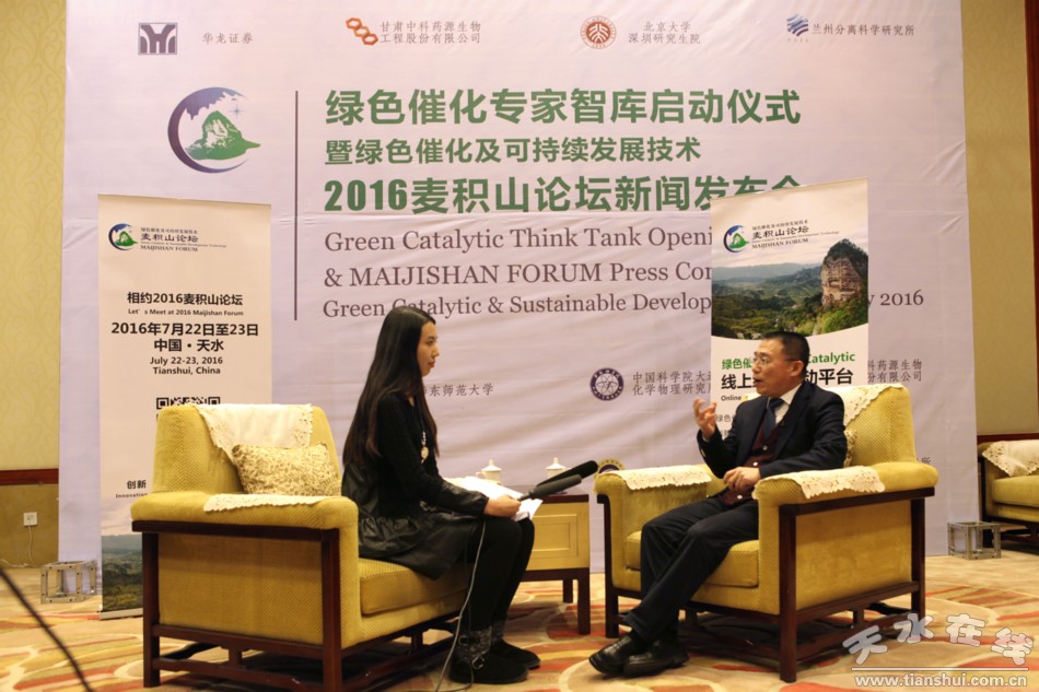 12月24日,綠色催化專(zhuān)家智庫(kù)啟動(dòng)儀式暨2016綠色催化和可持續(xù)發(fā)展技術(shù)麥積山論壇新聞發(fā)布會(huì)在蘭州舉行。記者就相關(guān)問(wèn)題專(zhuān)題采訪(fǎng)了天水市委書(shū)記王銳。