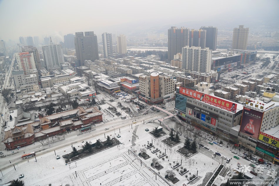 天水城落下2015年冬季的第一場雪