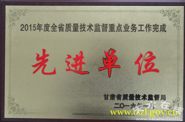 1月21日,甘肅省質(zhì)量技術(shù)監(jiān)督工作會(huì)議在蘭州召開,會(huì)議對(duì)全省2015年度重點(diǎn)業(yè)務(wù)工作完成較好的5個(gè)市州局進(jìn)行了表彰獎(jiǎng)勵(lì)。天水市質(zhì)監(jiān)局被評(píng)為“2015年度全省質(zhì)量技術(shù)監(jiān)督重點(diǎn)業(yè)務(wù)工作完成先進(jìn)單位”。