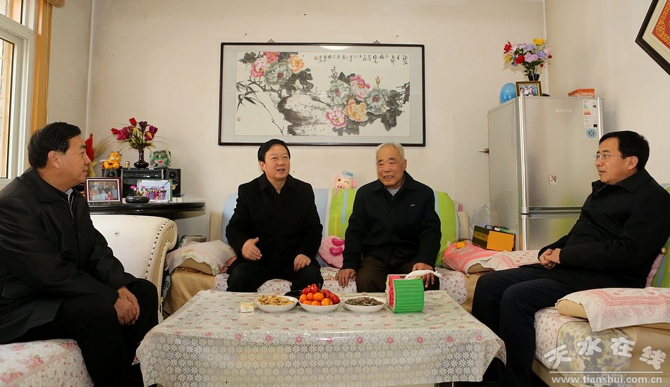 在新春佳節(jié)來臨之際,1月28日,天水市委副書記、市長楊維俊,市委常委、組織部長王光慶走訪慰問了離退休老干部李世榮、宋敬國、劉滿長、陳玉琴,為他們送去了節(jié)日的問候和祝福。市政府秘書長逯克宗一同慰問。