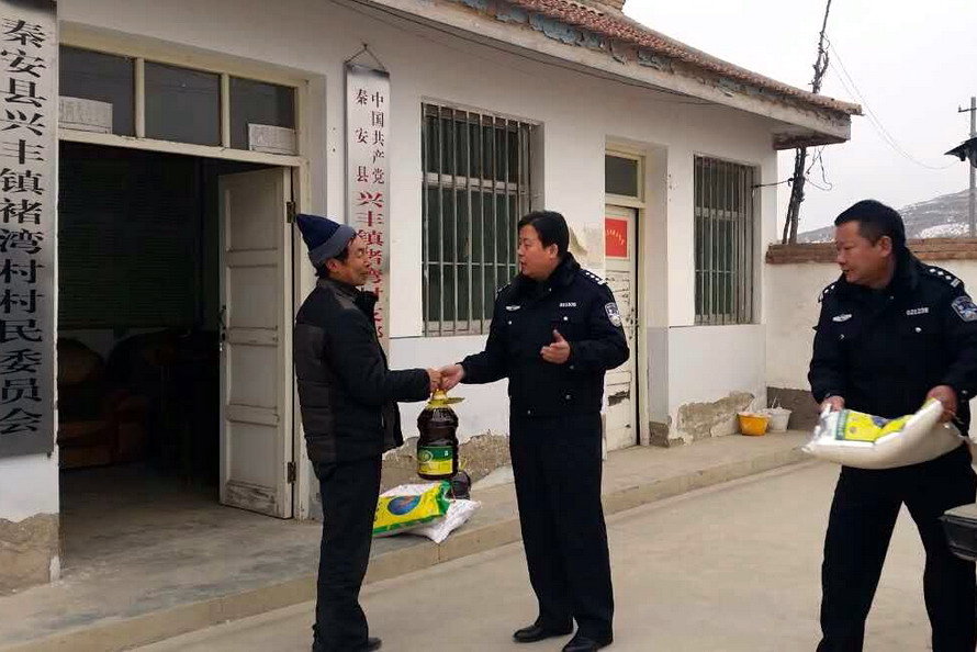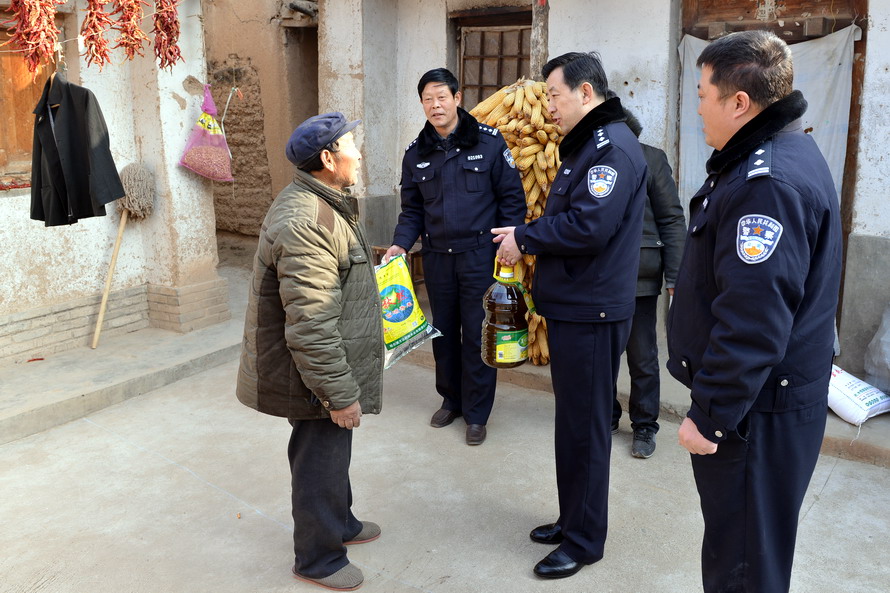 新春佳節(jié)來臨之際,天水市公安局交警支隊領(lǐng)導(dǎo)分別帶隊,拉著米、面、油等慰問品,深入支隊“雙聯(lián)”行動和精準(zhǔn)扶貧點——秦安縣蓮花鎮(zhèn)好地村和興豐鎮(zhèn)張莊村、何楊村、褚灣村、安灣村、朱李村,走訪慰問當(dāng)?shù)靥乩舸迕,為他們送去了支隊的問候和關(guān)懷。