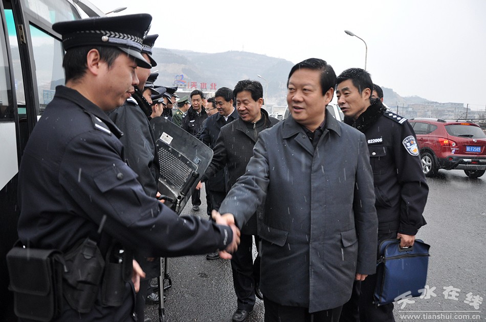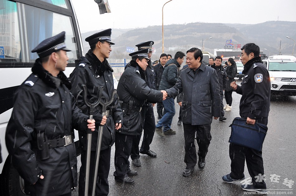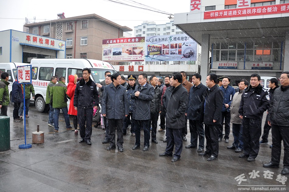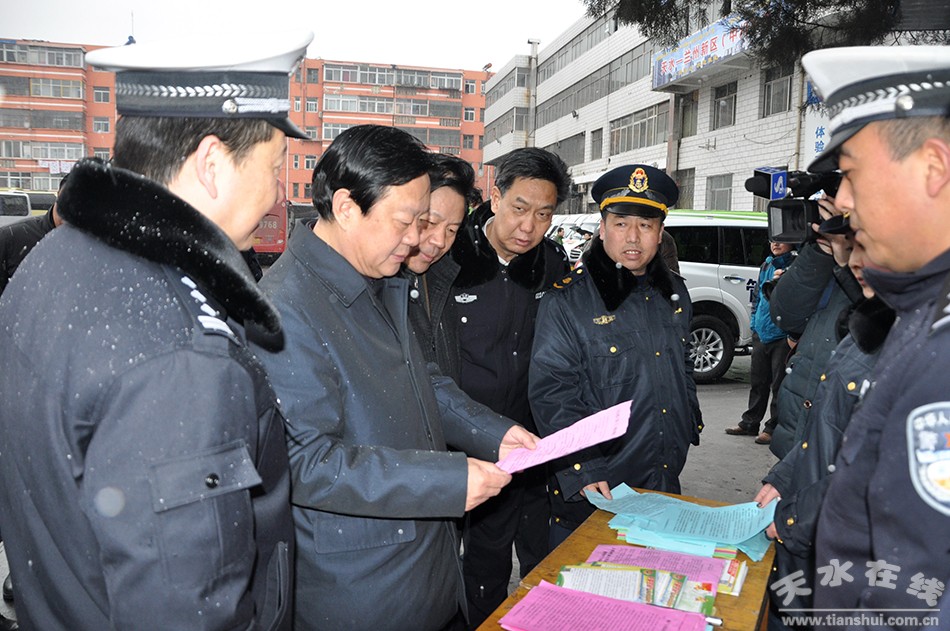 2月3日下午,天水市委副書(shū)記、市長(zhǎng)楊維俊帶領(lǐng)市公安、安監(jiān)、交通運(yùn)輸、運(yùn)管、交警支隊(duì)、消防支隊(duì)等相關(guān)部門以及秦州區(qū)政府負(fù)責(zé)人,現(xiàn)場(chǎng)檢查了春節(jié)前安全生產(chǎn)工作,向堅(jiān)守在一線的干部職工表示衷心感謝并致以新春的祝福。楊維俊強(qiáng)調(diào),各相關(guān)部門一定要繃緊安全生產(chǎn)之弦,嚴(yán)格落實(shí)各項(xiàng)安全措施,完善安全生產(chǎn)應(yīng)急預(yù)案,確保節(jié)日期間的生產(chǎn)安全,確保全市人民度過(guò)一個(gè)平安、祥和的春節(jié)。市委常委、副市長(zhǎng)張明泰,市政府秘書(shū)長(zhǎng)逯克宗一同檢查。