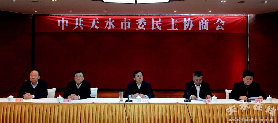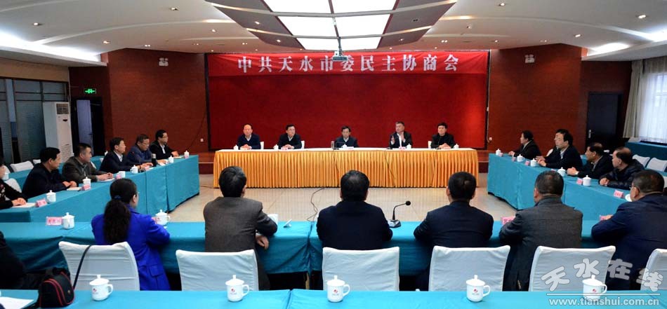 3月16日下午,中共天水市委召開民主協(xié)商會,主要就市政協(xié)領導班子人事調(diào)整情況與各民主黨派、工商聯(lián)、各人民團體和無黨派人士進行協(xié)商,形成共識。