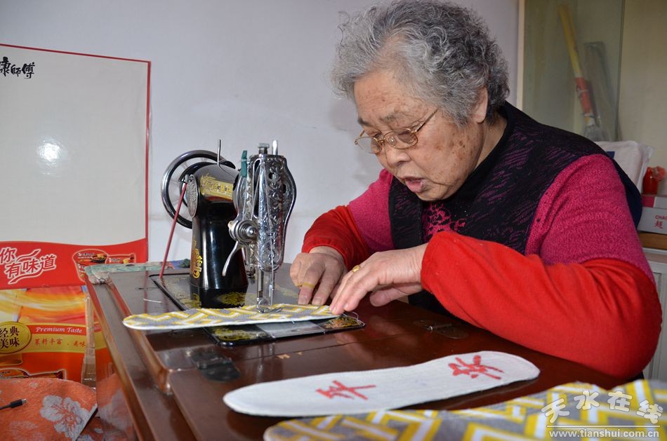 2010年,王秀芹找到了消防支隊的指導員,問清了每位消防員的鞋碼,拉著大女兒從商業(yè)大廈買來白布、彩線,開始了第一批鞋墊的制作。當別的老人在休息聊天時,王秀芹躲在家里一雙又一雙地糊鞋墊、納鞋墊、縫鞋墊,堅持了半年時間后,她的60多雙鞋墊做好了,“八一”當天,王秀芹來到天水郡消防中隊,將鞋墊送給消防官兵,大家都很喜歡,說她納的鞋墊是奶奶牌的,很厚實、很溫暖。