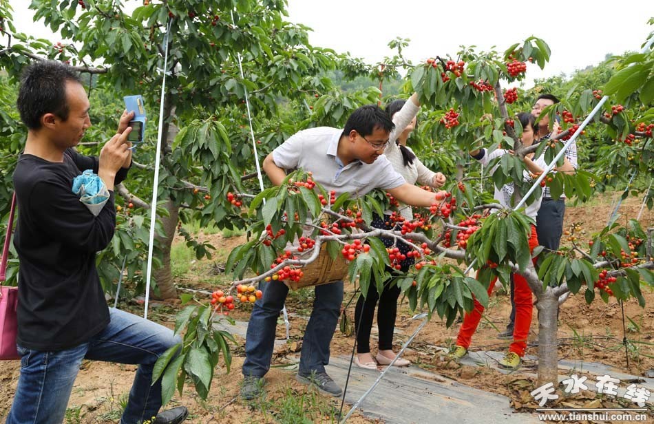 有人說(shuō),天水的五月是屬于大櫻桃的;鸺t的5月,請(qǐng)你到煙鋪村來(lái)吃大櫻桃,一串串火紅的大櫻桃如同紅寶石一般掛滿枝頭,鮮嫩欲滴。