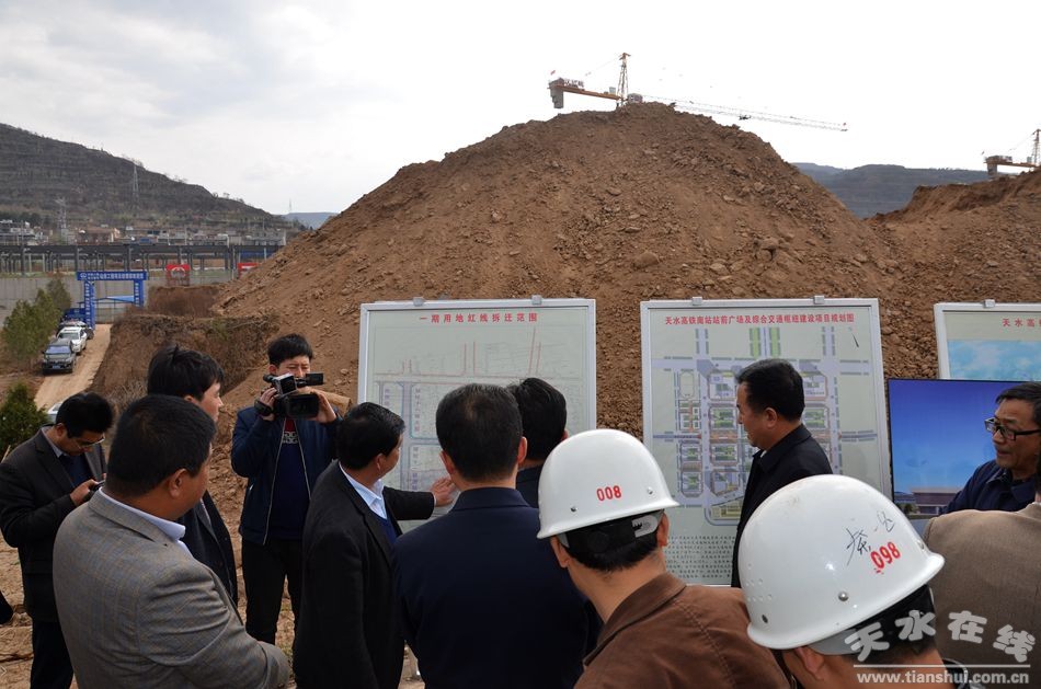 張明泰強調(diào),天水南站是寶蘭客運專線的重要中間站,是天水城市建設(shè)的重要組成部分和標(biāo)志性工程,各相關(guān)部門要高度重視,進一步加強協(xié)調(diào)溝通,全力推進寶蘭客專天水南站項目建設(shè)進度。要積極協(xié)調(diào)解決工程建設(shè)中存在的困難和問題,加快推進高鐵站配套的站前廣場、進站道路、給排水、供熱管網(wǎng)等工作,確保寶蘭客專天水南站建設(shè)工作順利推進;ㄅf(zhèn)政府要繼續(xù)發(fā)揚連續(xù)作戰(zhàn)的精神,確保一期工程征地拆遷工作全部完成,市交通局要加快招投標(biāo)并安排施工隊伍進場施工。