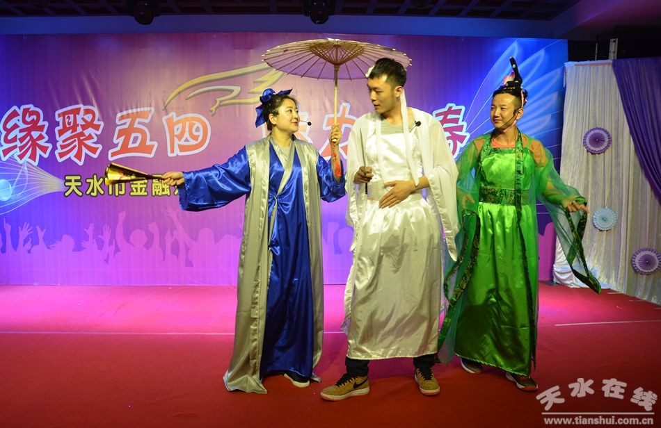 晚會于19點30分準時開始。中國人民銀行天水中支黨委書記、行長高懷璧做了致辭,對全市金融系統(tǒng)多年來的工作做了簡要回顧、總結(jié)和肯定,并獻上了對青年員工的寄語。歡快動感的《歡樂的跳舞》拉開了晚會的序幕。緊接著歌曲、舞蹈、朗誦、情景劇等節(jié)目輪番上陣,給大家獻上了一場美輪美奐的視聽盛宴!缎隆ぐ啄镒觽髌妗酚迷溨C幽默的方式展現(xiàn)了一場穿越古今的愛戀。歌伴舞《雙節(jié)棍》青春動感,雙節(jié)棍在一片“哼哼哈嘿”聲中被舞的虎虎生風,洋溢著青春的氣息。情景劇《消失的存款》,以極其現(xiàn)實的短暫情景表演了存款消失的過程,以深厚的法律知識警示銀行工作決不可徇私情,凸顯出了內(nèi)控制度和合規(guī)運營在銀行中的重要性。詩歌朗誦《一顆開花的樹》和《致橡樹》,用兩顆樹表達了對愛情的熱烈、誠摯和堅貞,聲情并茂的演繹讓現(xiàn)場觀眾迷醉其中。一首《最美的歌兒唱給媽媽》,唱出了對祖國母親濃濃的愛意,歌聲渾厚,舞姿翩翩。伴隨著一群小卓瑪曼妙輕盈的歡跳,《洗衣歌》為我們展示了民擁軍、軍愛民的溫馨場面。最后,小伙子們激情四射、動感十足的小編樂隊,演繹了經(jīng)典曲目《Fly me to the moon》和《相對》,用美妙的歌聲帶領(lǐng)大家到月球上盡情暢想,去追夢、筑夢、圓夢。表演節(jié)目之余,全市金融青年還共同完成了“我要找到你”等4個游戲,加強交流,增進感情。整個晚會以“青春、魅力、緣分”貫穿,可謂是精彩不斷,高潮迭起。