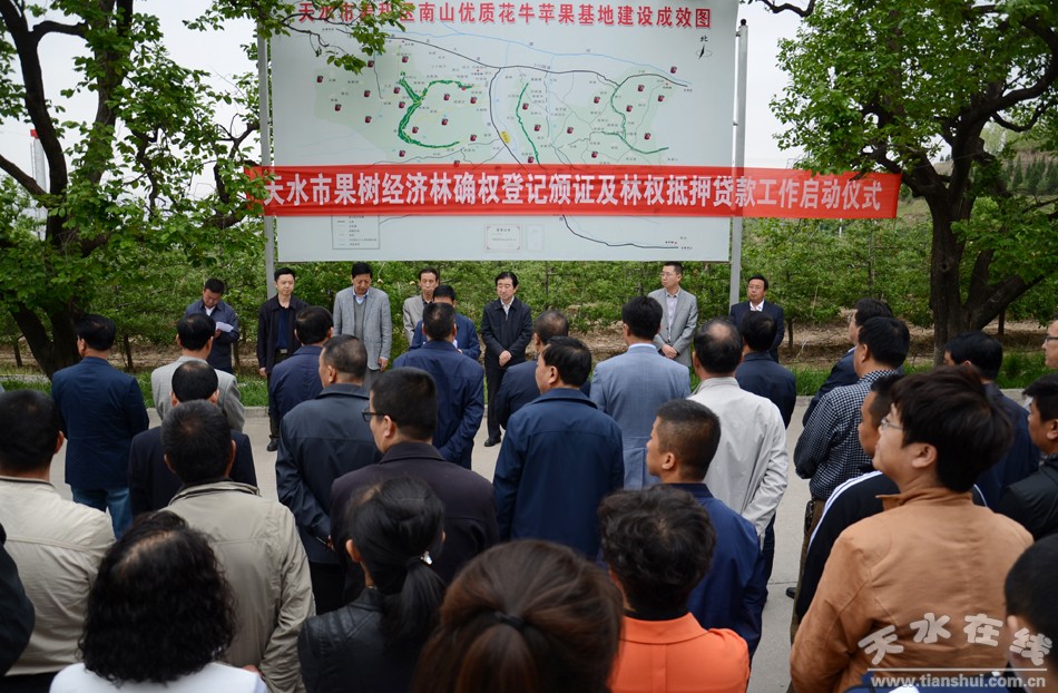 5月6日下午,全市果樹經(jīng)濟林確權(quán)登記頒證及林權(quán)抵押貸款工作啟動儀式在麥積區(qū)南山萬畝花牛蘋果基地舉行。副市長霍衛(wèi)平出席啟動儀式并講話。