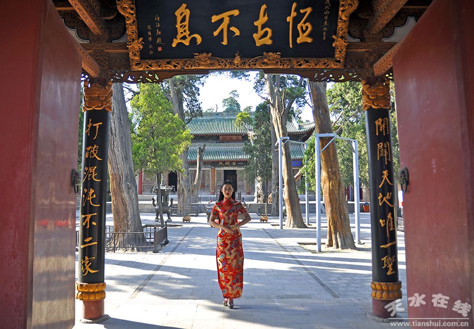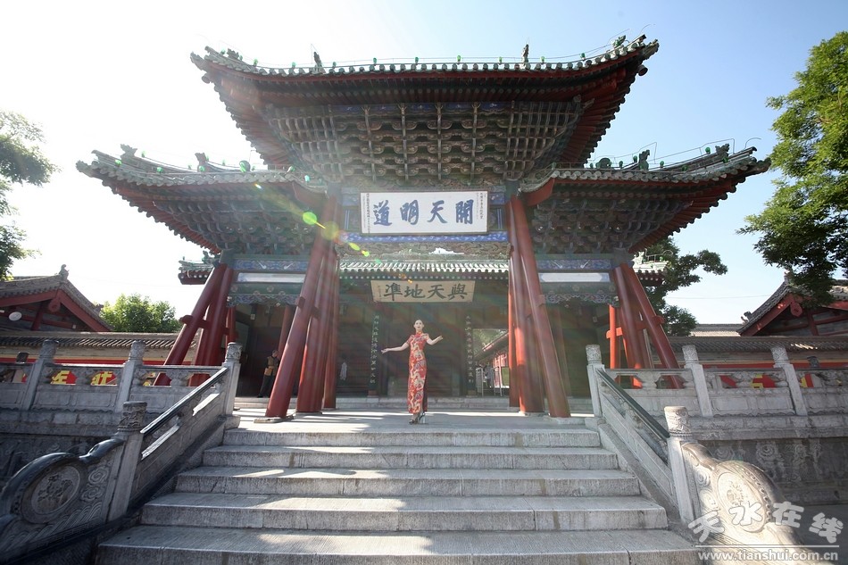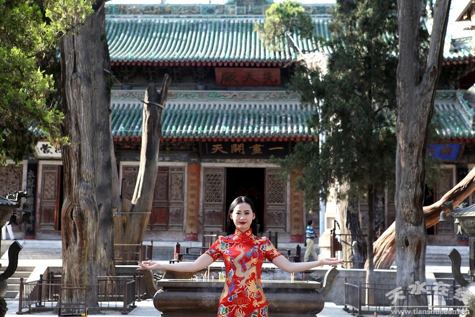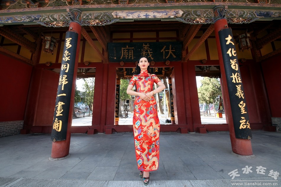 6月6日,擔(dān)任2016(丙申)年公祭伏羲大典的禮儀小姐在伏羲廟進(jìn)行訓(xùn)練。據(jù)悉,在2016年2月24日晚法國巴黎市金色大廳舉行的2016世界旅游小姐巴黎精英賽上榮獲“環(huán)球偶像獎”的天水白娃娃王姜樂將擔(dān)任今年伏羲大典的首席禮儀。