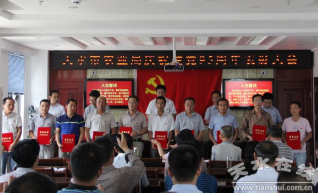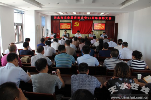 6月30日下午,天水市農(nóng)業(yè)局黨組召開慶祝建黨95周年表彰大會,表彰全局3個先進黨支部、10名優(yōu)秀共產(chǎn)黨員、5名優(yōu)秀黨務(wù)工作者。全體黨員面向黨旗莊嚴宣誓,重溫入黨誓詞。局黨組書記、局長逯國文做了講話,局黨組成員、副局長楊煥昱主持會議,局黨組成員、基層黨務(wù)工作者、機關(guān)全體黨員60余人參加會議。