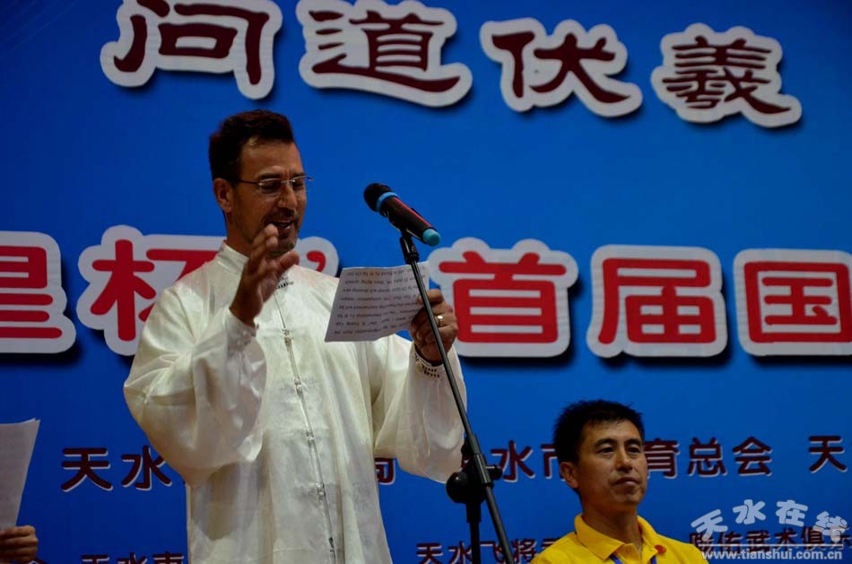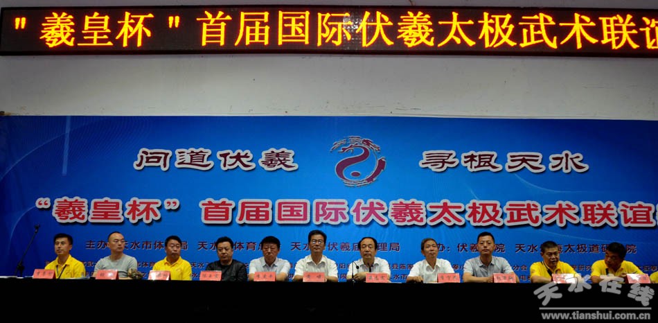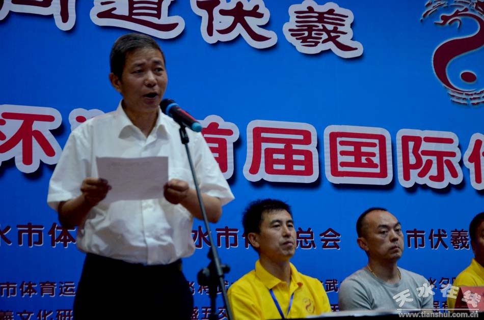 7月22日,由天水市體育局、天水市體育總會和天水市伏羲廟管理局主辦,伏羲學院、天水伏羲太極道研究院承辦的“問道伏羲”——“羲皇杯”首屆國際伏羲太極武術聯(lián)誼賽在市體育館開賽。市政協(xié)副主席安志宏出席開賽儀式并宣布聯(lián)誼賽開賽。