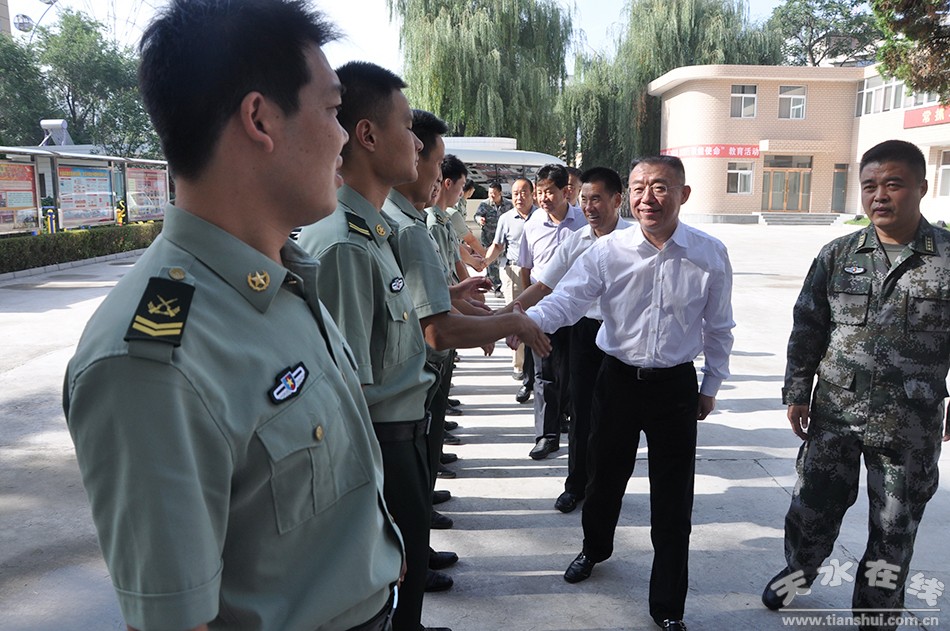 王銳一行先后來(lái)到天水軍分區(qū)、68202部隊(duì)、天水預(yù)備役炮兵團(tuán)、天水警衛(wèi)處、天水公安消防支隊(duì)、省軍區(qū)天水干休所等駐市部隊(duì)駐地,與部隊(duì)官兵親切交談,了解部隊(duì)建設(shè)發(fā)展情況,向他們一年來(lái)在支持天水經(jīng)濟(jì)社會(huì)建設(shè)中所作的貢獻(xiàn)表示感謝。