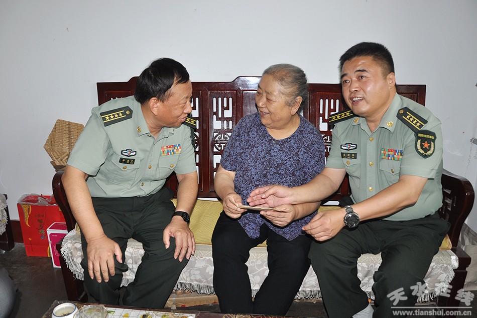 8月1日,天水市委常委、天水軍分區(qū)司令員李建中,天水軍分區(qū)政委袁敬偉率市民政局,秦州區(qū)人武部、區(qū)民政局等相關(guān)部門負(fù)責(zé)人,給緱晨烈士的母親送去了慰問金和慰問品,并致以崇高的敬意和節(jié)日的問候。