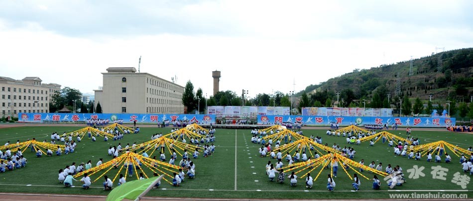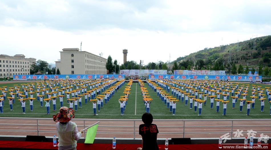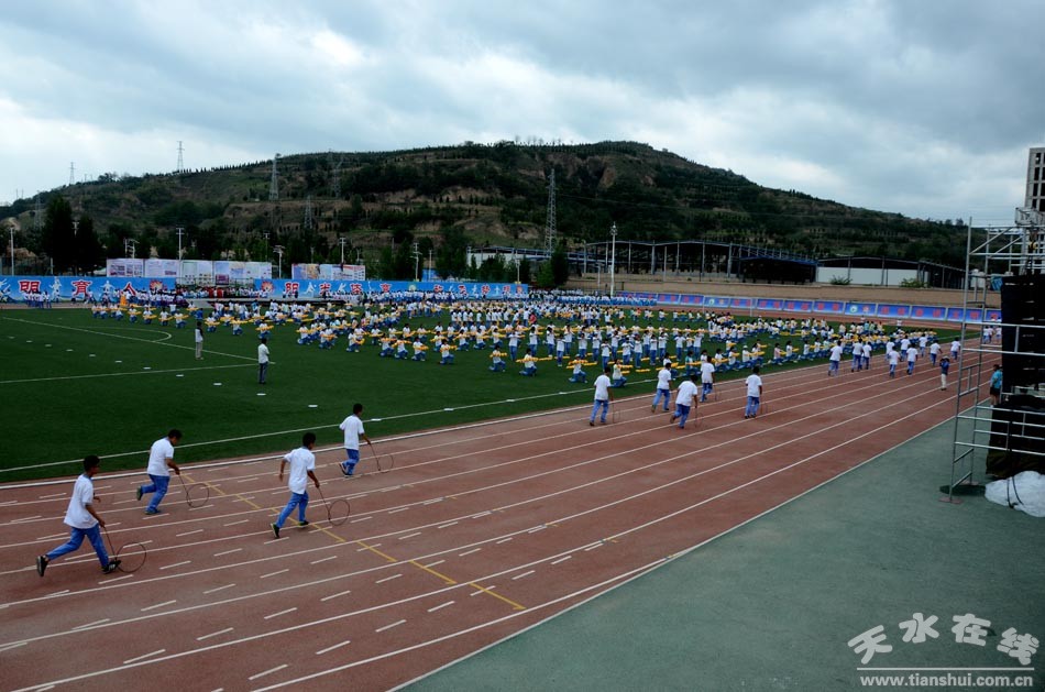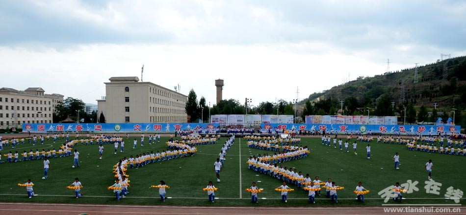 據(jù)悉,甘肅省第三屆中學(xué)生運(yùn)動(dòng)會(huì)將于8月6日在天水開(kāi)幕。為了組織好本次運(yùn)動(dòng)會(huì)大型開(kāi)幕式表演,天水市從7月初就抽調(diào)專業(yè)人員和天水一中、二中、三中、四中、八中、九中、逸夫中學(xué)和育生中學(xué)等學(xué)校的2700余名初高中學(xué)生加緊進(jìn)行全天候的排練,參與排練的老師與學(xué)生不畏高溫酷暑,頂著炎炎烈日揮汗如雨,歷時(shí)近1個(gè)月時(shí)間如期完成了開(kāi)幕式大型歌舞的排練。