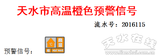 天水市氣象臺(tái)2016年8月15日15時(shí)30分繼續(xù)發(fā)布高溫橙色預(yù)警信號(hào):