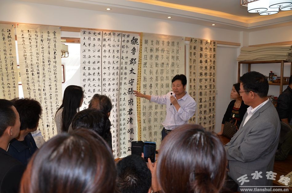 9月15日,由天水市書(shū)法家協(xié)會(huì)舉辦的迎中秋書(shū)法點(diǎn)評(píng)活動(dòng),在玉泉觀老慶黃金后花園舉行,來(lái)自天水市書(shū)法家協(xié)會(huì)的60多名會(huì)員參加了活動(dòng)。 天水市書(shū)法界精英薈聚一堂,大家相互切磋,相互學(xué)習(xí),為節(jié)日的天水增添了濃郁的書(shū)香氣氛。