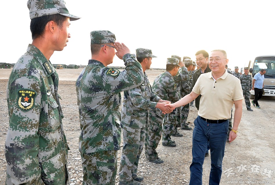 帶著市委、市政府和天水軍分區(qū)的深切問候,帶著天水380萬父老鄉(xiāng)親的深情厚誼,9月18日,天水市委書記王銳率領(lǐng)天水市黨政軍慰問團(tuán)專程來到酒泉外訓(xùn)基地,看望慰問參加外訓(xùn)演練的68202部隊(duì)官兵,對外訓(xùn)官兵表達(dá)擁軍之意和愛軍之情。 市委常委、宣傳部長王正茂一同慰問。