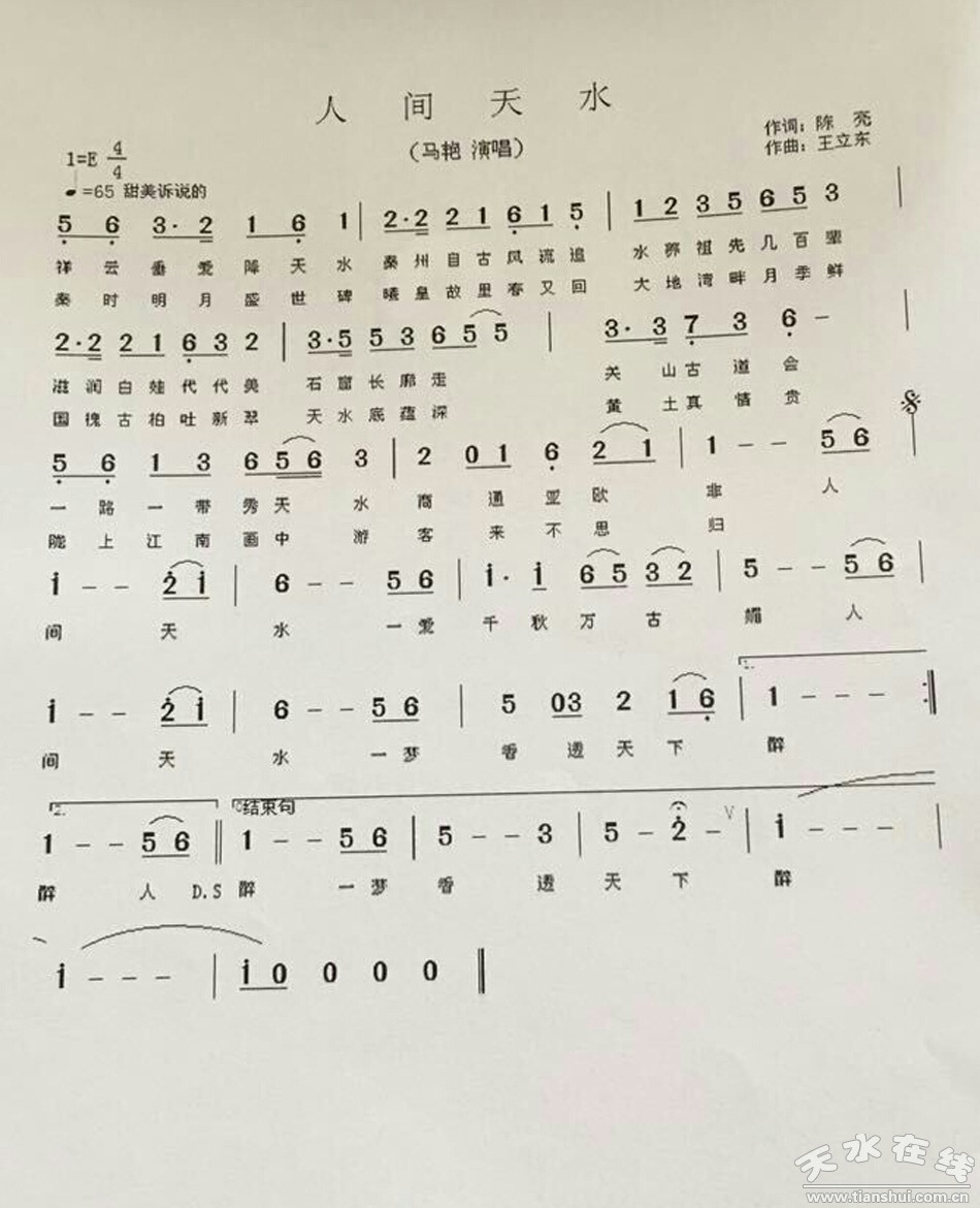 我會(huì)在歌詞上提一點(diǎn)小意見,因?yàn)樘焖陌淄尥藓苡忻,所以我將“滋養(yǎng)沃土倍倍肥”這句詞改成了“滋潤白娃代代美”,還有“國槐古柏吐青翠”這句我就改成了“花牛圣果滿山垂”,因?yàn)槲矣X得我們的花牛蘋果在海內(nèi)外都很有名,將這些有地方特色的東西寫到《人間天水》這首歌里再好不過了。