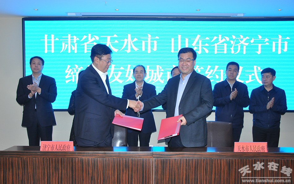 10月11日,天水市與山東省濟(jì)寧市簽約締結(jié)為友好城市。天水市委副書記、市長(zhǎng)楊維俊,濟(jì)寧市委書記、市人大常委會(huì)主任馬平昌,天水市政府秘書長(zhǎng)逯克宗出席簽約儀式。