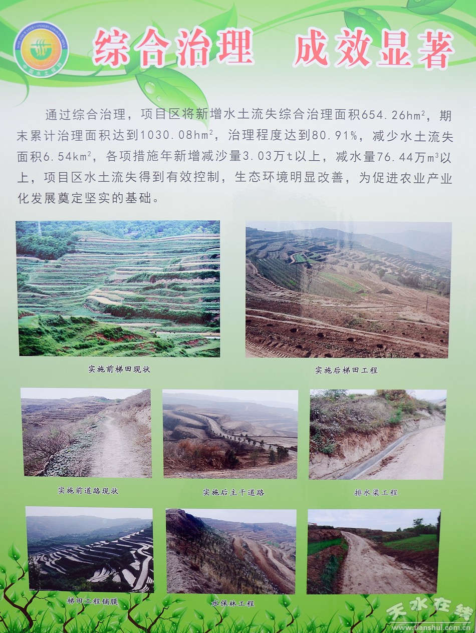 近年來(lái),我市先后實(shí)施了鞏固退耕還林口糧田建設(shè)項(xiàng)目、國(guó)家農(nóng)業(yè)綜合開發(fā)水土保持項(xiàng)目、黃河水保生態(tài)工程藉河示范區(qū)項(xiàng)目、全省第一輪500萬(wàn)畝梯田建設(shè)工程和新一輪750萬(wàn)畝梯田建設(shè)工程等一批國(guó)列省列水土保持生態(tài)建設(shè)項(xiàng)目,截至2015年底,全市累計(jì)治理水土保持面積6560.03平方公里,達(dá)到宜治理面積9647平方公里的68.03%,通過(guò)綜合治理,全市水土流失的發(fā)展態(tài)勢(shì)得到了有效遏制,生態(tài)環(huán)境和農(nóng)業(yè)生產(chǎn)條件得到改善,生態(tài)安全屏障綜合能力得到明顯加強(qiáng)。