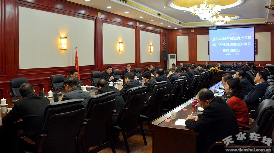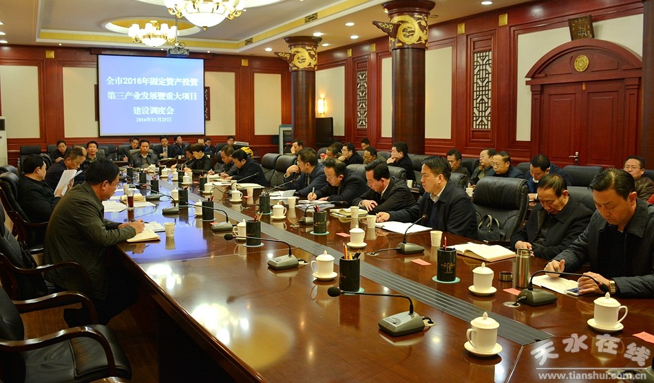 11月25日,天水市政府召開2016年固定資產(chǎn)投資、第三產(chǎn)業(yè)發(fā)展暨重大項(xiàng)目建設(shè)調(diào)度會(huì)。 市委常委、常務(wù)副市長(zhǎng)趙衛(wèi)東強(qiáng)調(diào),各縣區(qū)和相關(guān)部門,要認(rèn)真抓好補(bǔ)齊落實(shí),充分利用今年有限的工作時(shí)間,深入分析問題,切實(shí)查漏補(bǔ)缺,采取得力措施,確保固定資產(chǎn)投資、項(xiàng)目建設(shè)進(jìn)度、三產(chǎn)全年目標(biāo)任務(wù)按期圓滿完成。