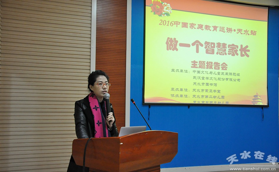 12月3日,由中國文化與兒童發(fā)展課題組、天水市圖書館主辦,天水蒙正堂承辦的2016全國智慧父母家庭教育巡講活動天水站在市圖書館拉開帷幕,特邀中國教育學會家庭教育專業(yè)委員會特聘講師李紅梅連續(xù)三場為到場家長講解“如何做一個智慧的家長”。