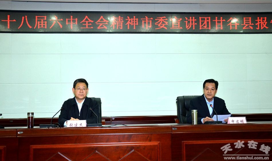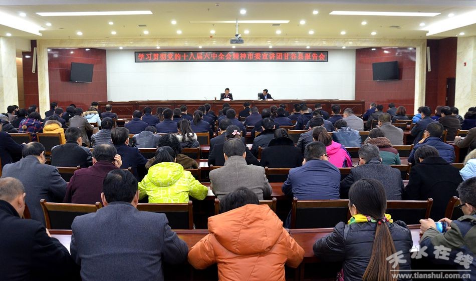 12月9日,天水市副市長張建杰到甘谷縣宣講黨的十八屆六中全會精神。他強(qiáng)調(diào),甘谷縣各級黨組織和廣大黨員干部要把深入學(xué)習(xí)貫徹黨的十八屆六中全會精神作為當(dāng)前和今后一個(gè)時(shí)期的首要政治任務(wù),以高度的政治責(zé)任感和使命感,全方位、多層次的抓好全會精神的學(xué)習(xí)和貫徹落實(shí)。