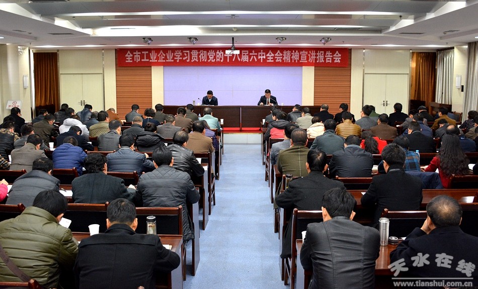 12月9日上午,天水市委宣講團(tuán)成員、副市長郝文杰為全市工業(yè)系統(tǒng)干部職工宣講了黨的十八屆六中全會精神。
