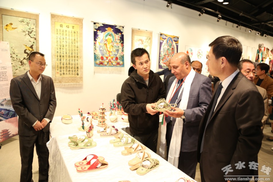 非遺展示板塊共有定西剪紙、慶陽刺繡、阿文書法、裕固族服飾等8個(gè)項(xiàng)目。其中,天水參展的天水雕漆技藝、天水絲毯織造技藝、秦安麥稈編和甘谷麻鞋4個(gè)項(xiàng)目占據(jù)了所有8個(gè)非遺展示項(xiàng)目的半壁江山。天水精選的4個(gè)非遺項(xiàng)目,作為“甘肅文化周”非遺展示板塊的重要內(nèi)容,吸引了眾多觀眾前來參觀,受到了當(dāng)?shù)孛癖姷那嗖A和稱贊。這也是天水非遺第一次走出國門,為宣傳天水傳統(tǒng)文化、甘肅傳統(tǒng)文化作出了獨(dú)特貢獻(xiàn)。