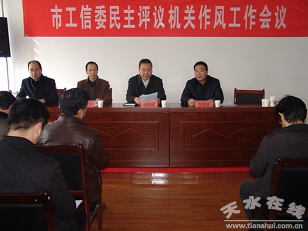 2016年12月30日下午,天水市工信委召開效能風(fēng)暴政風(fēng)行風(fēng)和機關(guān)作風(fēng)民主評議大會,市第四行評組民評代表、市工信委特邀監(jiān)督員、委機關(guān)干部職工47人參加了會議。會議由市工信委黨委書記、主任、企業(yè)工委書記何曉斌同志主持。