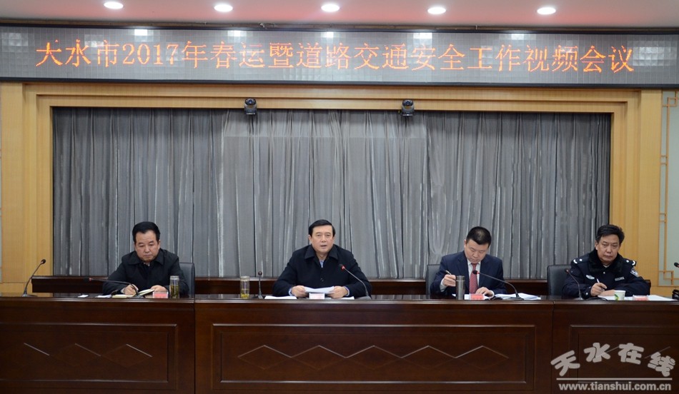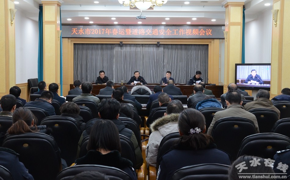 1月10日,我市召開(kāi)2017年春運(yùn)暨道路交通安全工作視頻會(huì)議,傳達(dá)學(xué)習(xí)省委、省政府主要領(lǐng)導(dǎo)對(duì)全省道路交通安全管理工作的重要批示,貫徹落實(shí)全省春運(yùn)工作和道路交通安全工作會(huì)議精神,分析當(dāng)前道路交通安全形勢(shì),安排部署全市春運(yùn)暨道路交通安全工作。市委常委、常務(wù)副市長(zhǎng)趙衛(wèi)東出席會(huì)議,副市長(zhǎng)郝文杰主持會(huì)議。