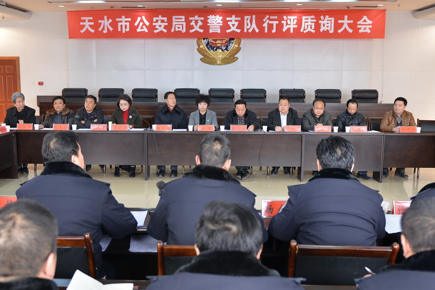 1月10日下午,天水市公安局交警支隊(duì)在八樓會(huì)議室組織召開(kāi)效能風(fēng)暴行動(dòng)民主評(píng)議政風(fēng)行風(fēng)和機(jī)關(guān)作風(fēng)質(zhì)詢大會(huì)。會(huì)議由市民評(píng)辦第二民評(píng)組組長(zhǎng)彭北生主持,市第一、第三、第四等八個(gè)民評(píng)組組長(zhǎng),交警支隊(duì)特邀監(jiān)督員(民評(píng)代表)、管理服務(wù)對(duì)象代表應(yīng)邀參加會(huì)議,交警支隊(duì)機(jī)關(guān)全體民警、支隊(duì)直屬隊(duì),秦州、麥積公安分局交警大隊(duì)主要負(fù)責(zé)人及部分民警代表共80余人參加會(huì)議。