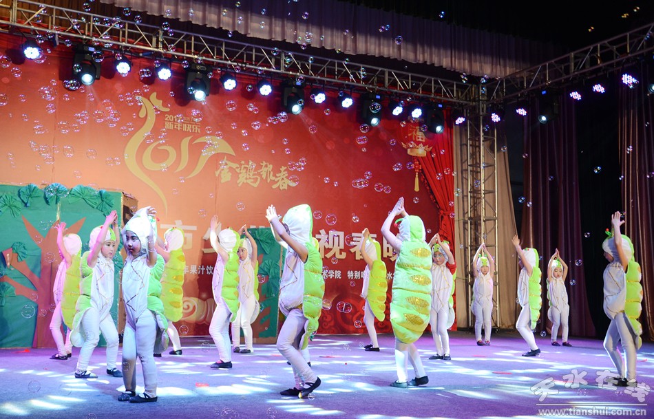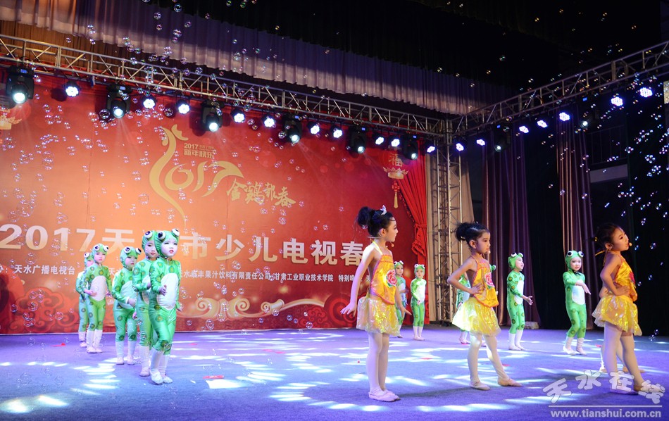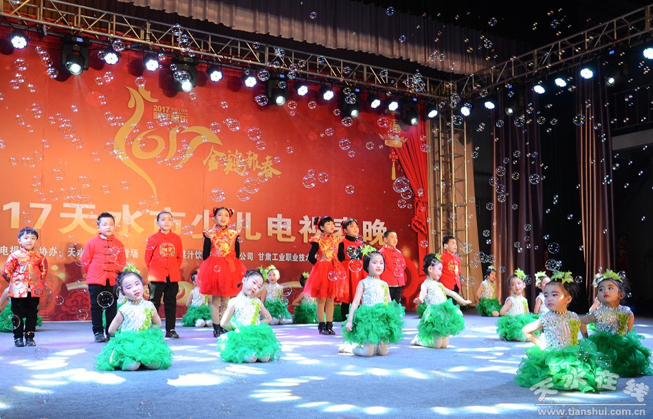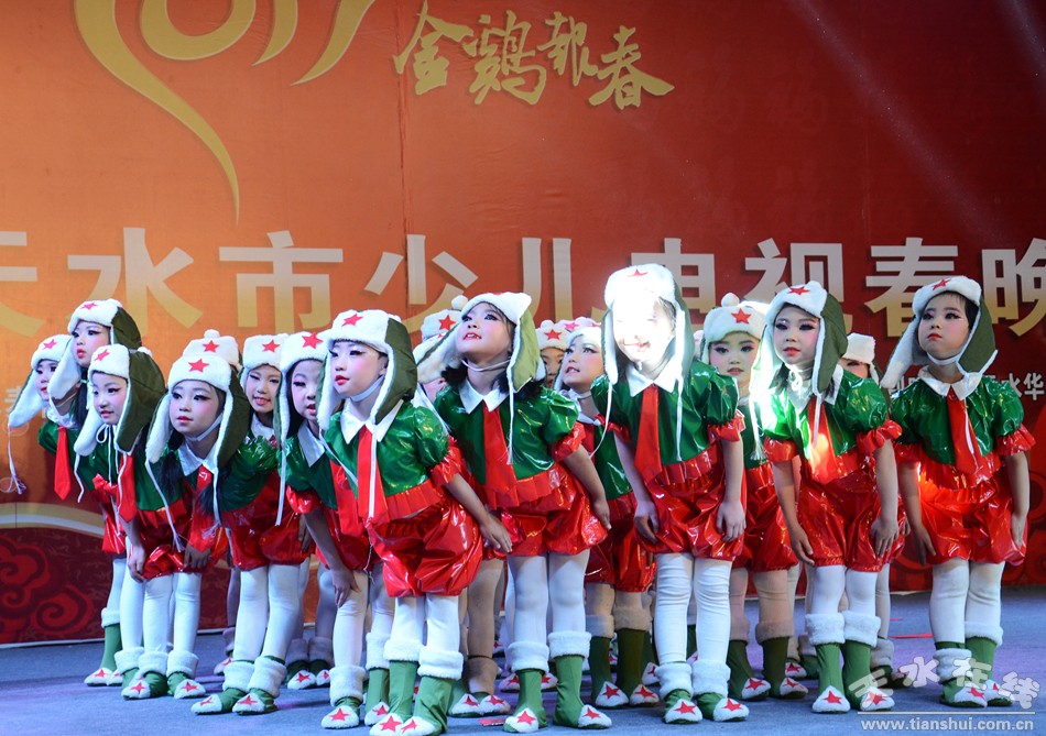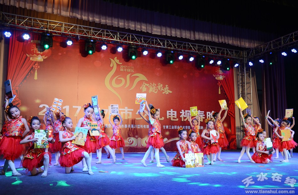 1月11日,金雞報(bào)春2017天水市少兒電視春晚在省工職學(xué)院錄制完成。晚會由天水廣播電視臺主辦,分天水娃過大年、童趣大聯(lián)歡、少年強(qiáng)則國強(qiáng)三個篇章,近1000名小演員演出了舞蹈、小合唱、武術(shù)、朗誦、器樂演奏等20多個節(jié)目。晚會預(yù)計(jì)春節(jié)期間在天水電視臺新聞、公共、旅游3個頻道播出,時長約3小時。