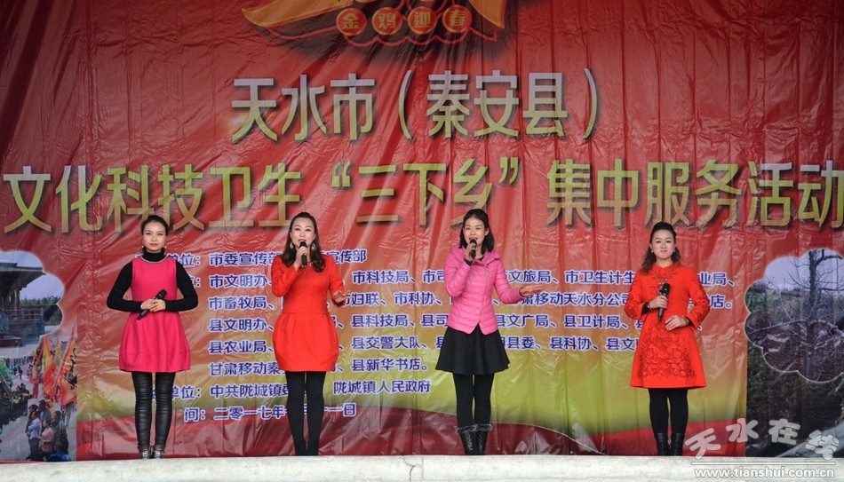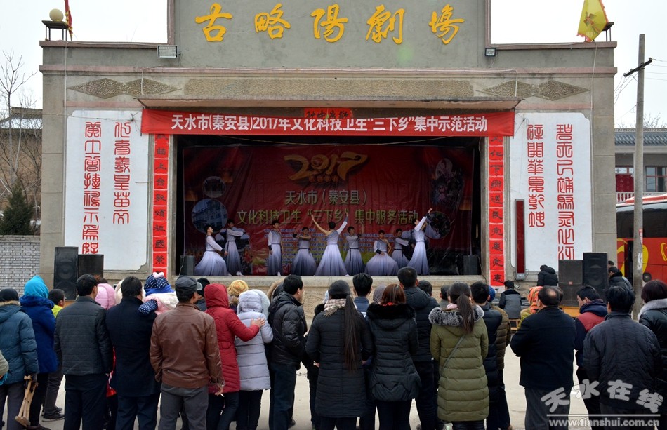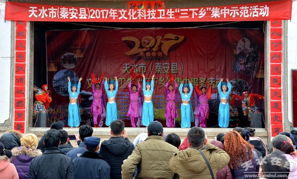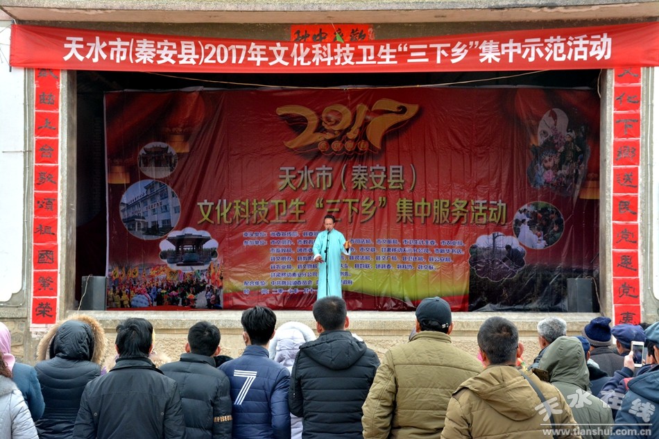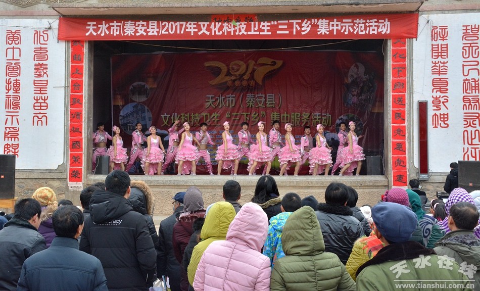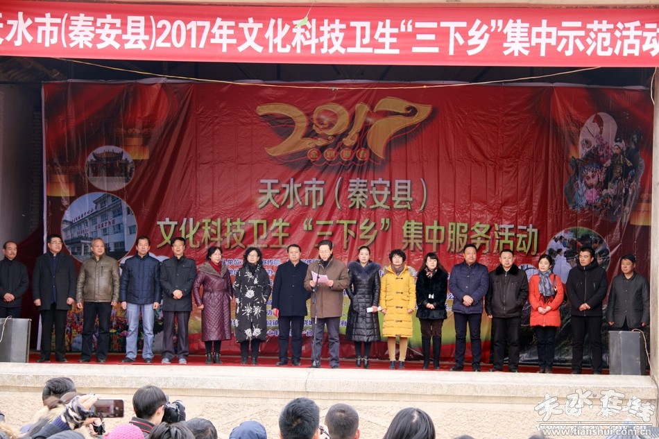 惠農(nóng)愛民灑雨露,驅(qū)寒迎春暖媧鄉(xiāng)。1月11日,2017年天水市文化科技衛(wèi)生“三下鄉(xiāng)”集中示范活動在秦安縣隴城鎮(zhèn)舉行。來自市縣30多個部門和單位的工作人員為廣大群眾帶來了文藝演出、科普宣傳、醫(yī)療義診等現(xiàn)場服務(wù),正式拉開了全市2017年“三下鄉(xiāng)”活動的序幕。