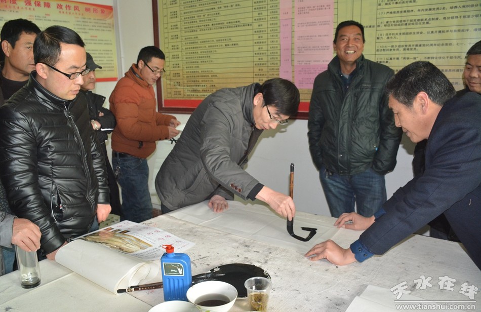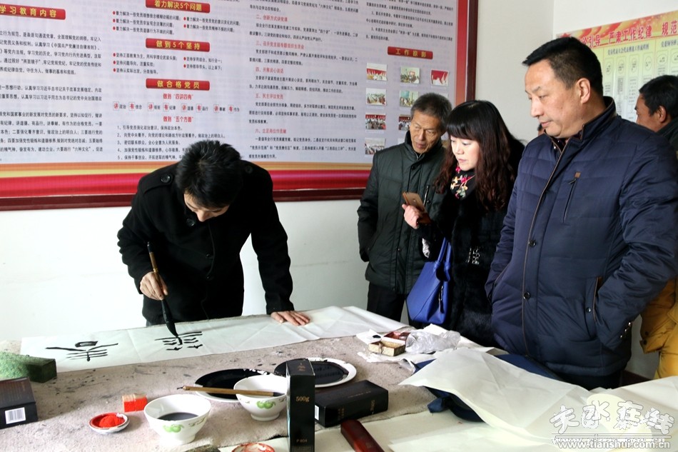(現(xiàn)場為群眾創(chuàng)作書畫作品)